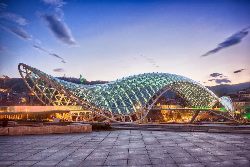 After breakfast and checkout, fly to Tbilisi, the Georgian capital. Upon arrival, meet your guide and transfer to the hotel for check-in. The afternoon and evening are free for leisure. Suggested activities include a relaxed walk along Rustaveli Avenue with its cafés, theatres, and shops, or an optional evening stroll to the Bridge of Peace for its illuminated views. Overnight stay in Tbilisi.